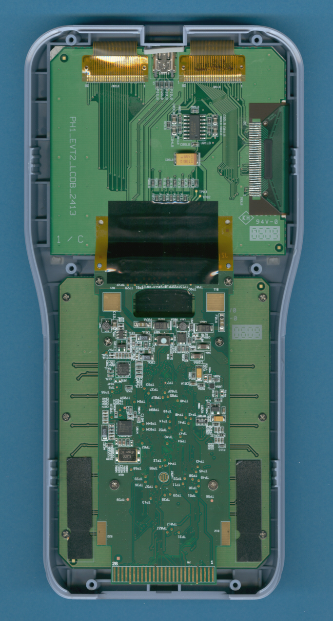 PCBs reveal the construction of the 240 * 320 pixel gray-scale LC-Display, the TI-OMAP and a total of three different memory chips.