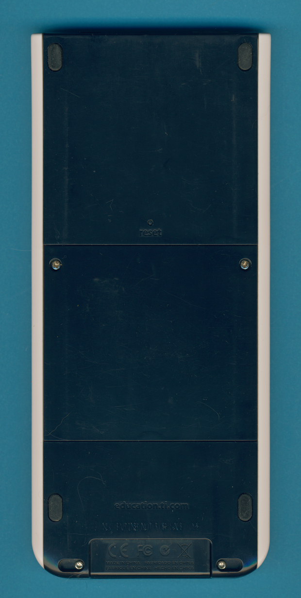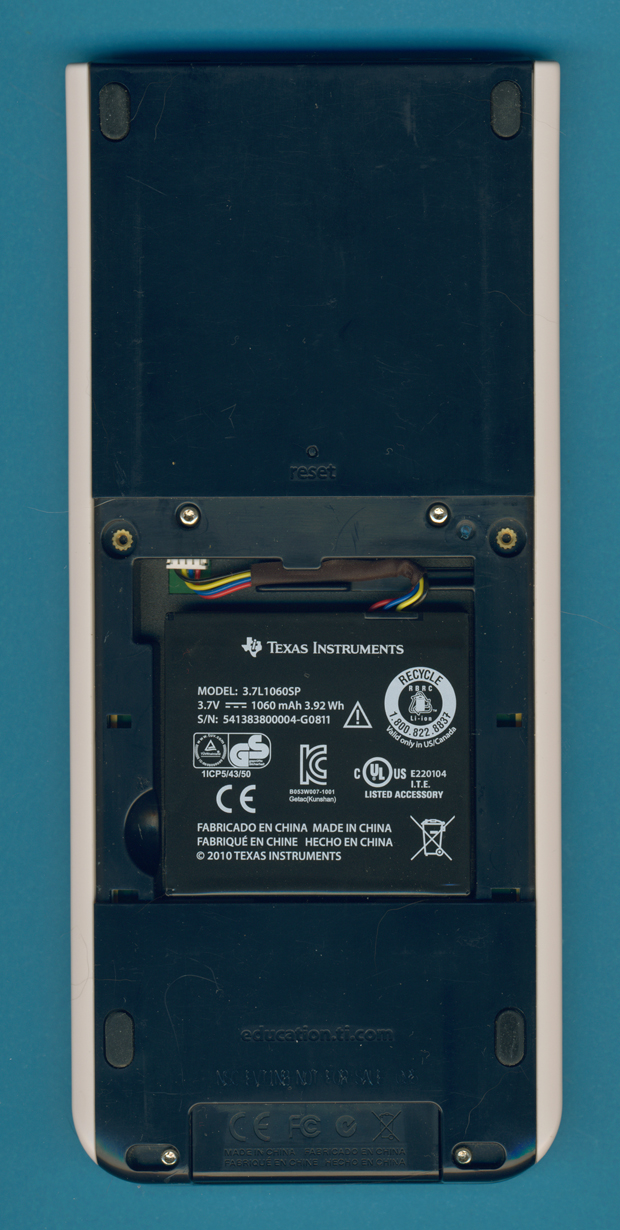 of the TI-Nspire COLOR features a cover to access the rechargeable battery.