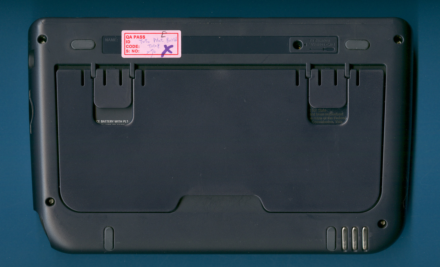 information: Model No: PLT - SU1, © 2003, Made in Taiwan. Please notice the hidden slot for the memory card under the removed battery.