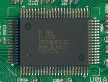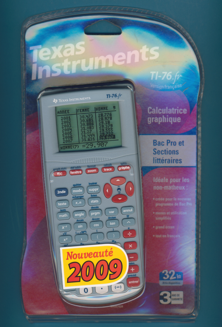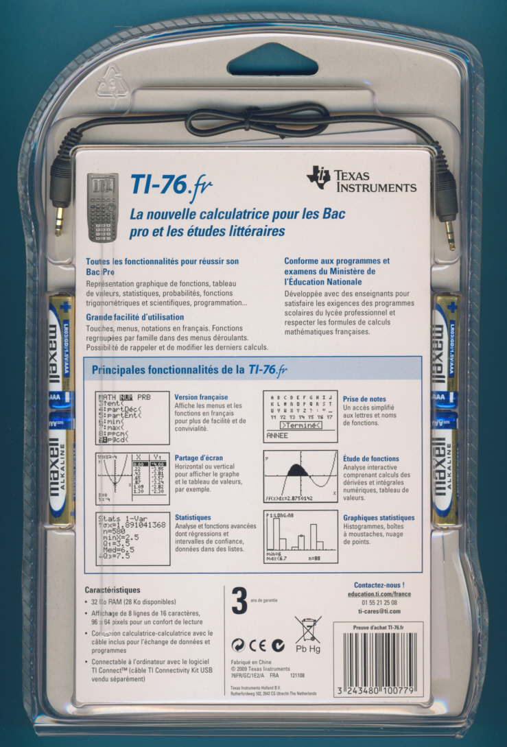 (PCB) of the TI-76.fr manufactured in 2009 looks identical with the TI-82 Stats.fr introduced in 2006. |