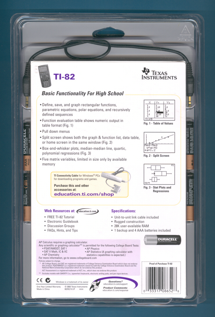 TI-82 Parcus was manufactured in August 2003 by Inventec in China.