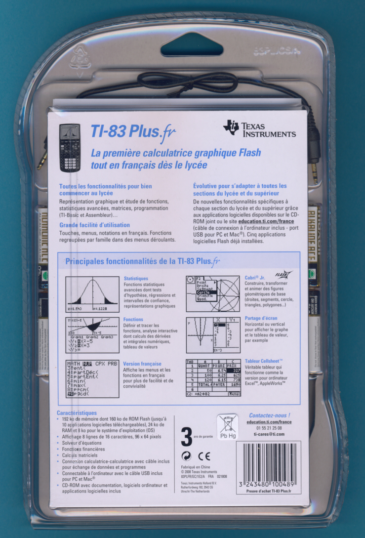 (PCB) of the TI-83 Plus.fr manufactured in 2008 looks identical with the previous versions.