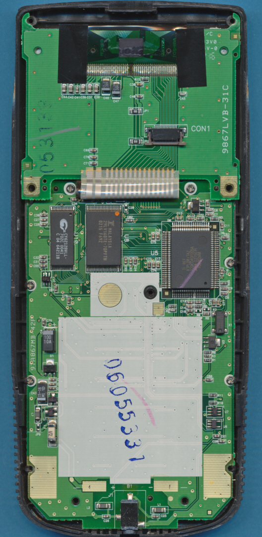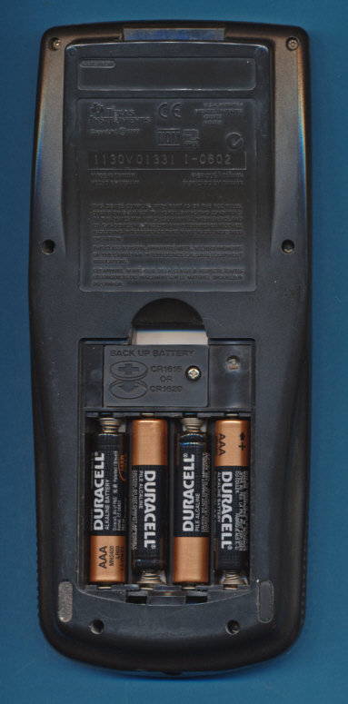 calculator was manufactured in August 2002 by Inventec Corporation in Taiwan (Date code I-0802 » mth 08 yr 2002). It uses a redesigned bottom shell of the housing to accommodate the ViewScreen connector. |