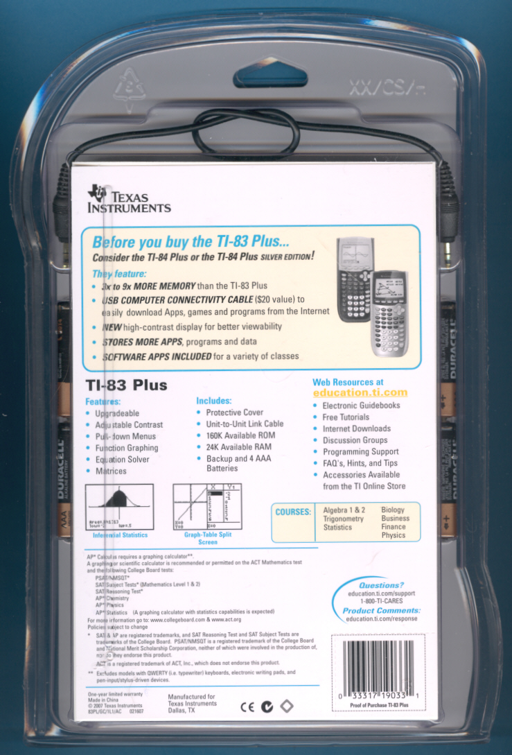 driver of the TI-83 Plus manufactured in 2007.
