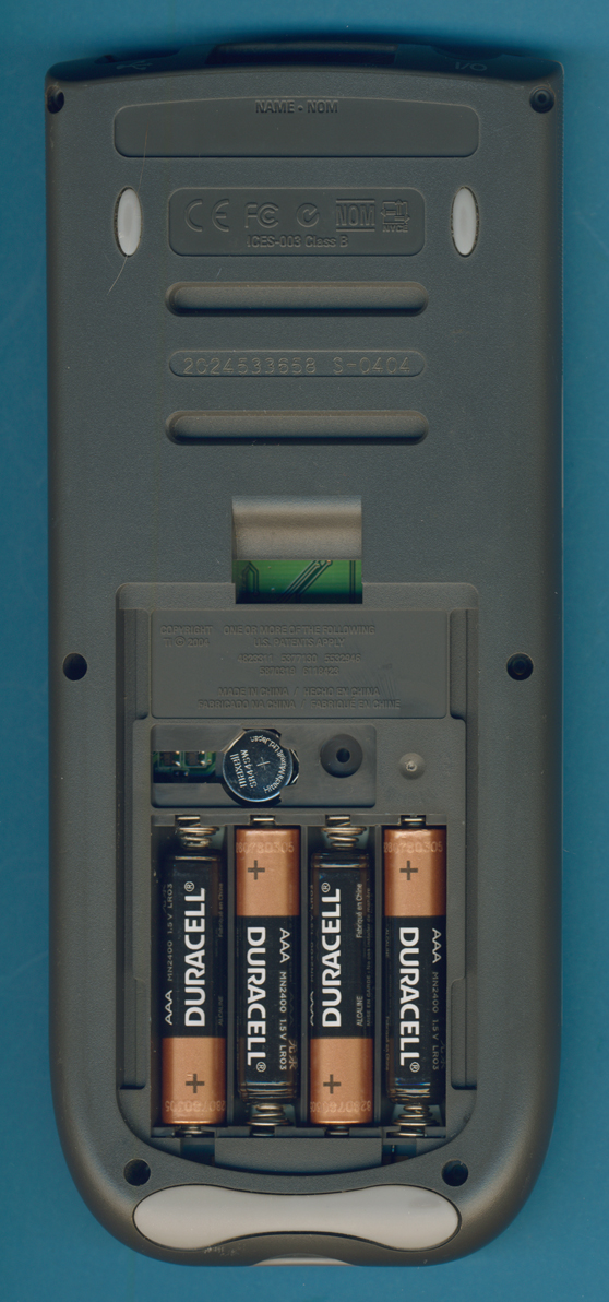 calculator was manufactured in April 2004 by Inventec Corporation in China (Date code S-0404 » mth 04 yr 2004). It uses a slightly redesigned bottom shell of the housing to accommodate the ViewScreen connector. |