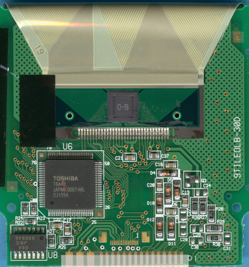 of the TI-86 in a small COB housing supported by a Toshiba T6A40 row display driver. |