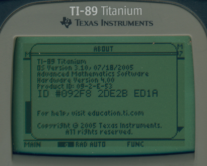 A TI-89 Titanium with ROM-Version 3.10 manufactured July 2006. |