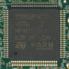 The next picture on the right is for the Secondary CPU of the ORION TI-84 Plus Module, a STM32F205REsingle-chip controller centered around an ARM Cortex-M3 core, typically running at 120 MHz. The device integrates both 512k Bytes of Flash-ROM and 128k Bytes of RAM.