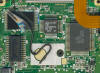 ROM (Read Only Memory): The ROM contains the operating system of the calculator. The first products on the market used mask-programmable ROM, the program was stored already during the production of the Integrated Circuit. Later calculators changed to Flash ROM, a technology allowing the programming of the software during the final production stage of the calculator. With the TI-83 Plus and all later graphing calculators from Texas Instruments even the user was able to reprogram the operating system. The Flash ROM 29F400 of this TI-83 Plus VSC Prototype was manufactured by AMD and has a capacity of 512k Bytes.