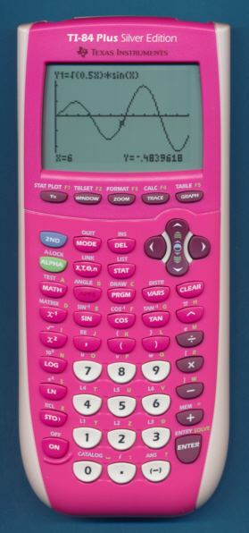 This colorful TI-84 Plus Silver Edition was introduced for the Back-to-School 2008 campaign by office product retailer Staples together with its blue sibling.