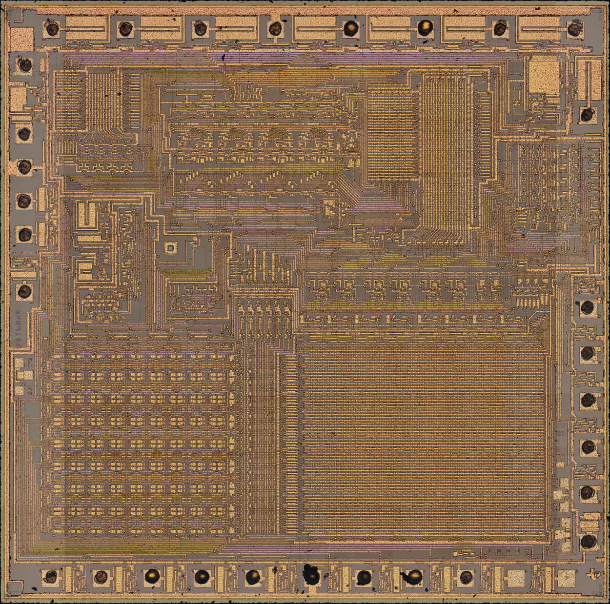 with the Texas Instruments TI-55 II and many other calculators. Die Photo courtesy of