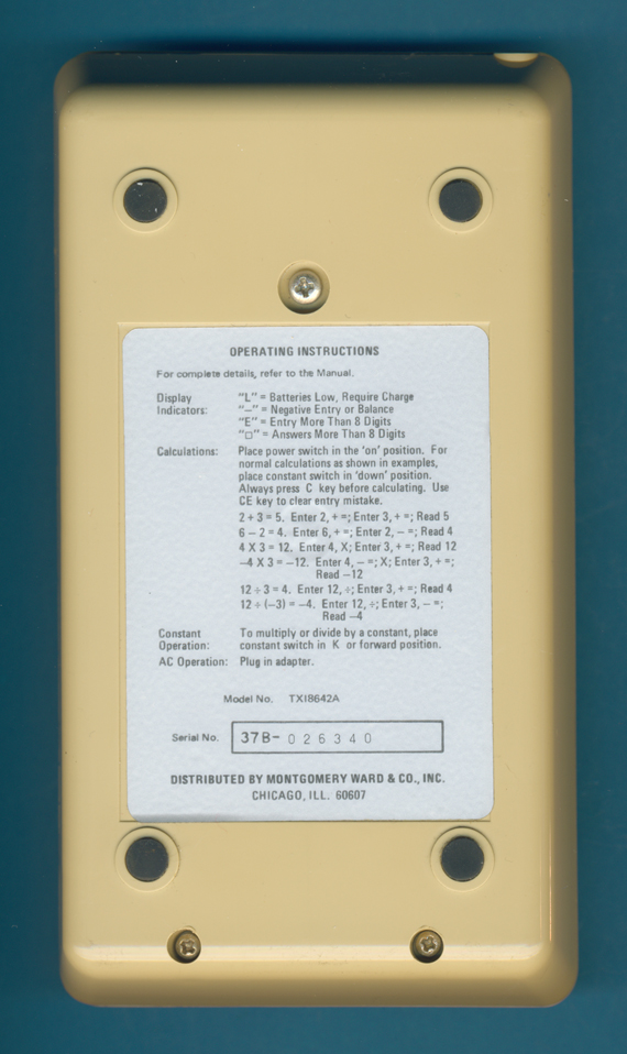 The Montgomery Ward TXI-8642A relies on Texas Instruments technology for the keyboard, display drivers and display.