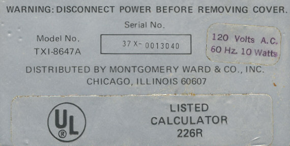 aka TXI-8647A looks similiar to the Radio Shack EC-1000 but lacks the second slider switch on the small PCB. |