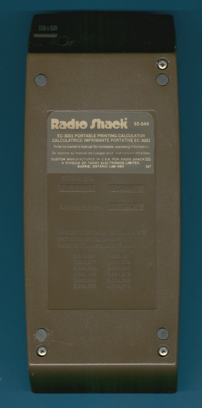 The back side of the Radio Shack EC-3001 makes use of a