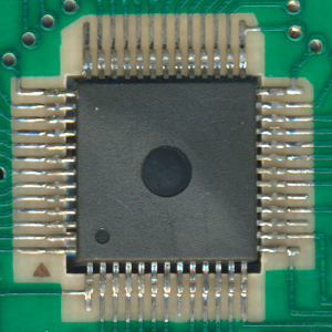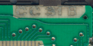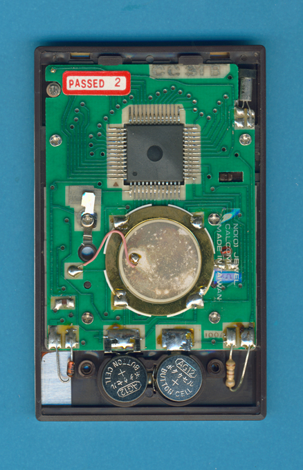 (PCB) of the Radio Shack EC-303 calculator is centered around a NEC uPD1032G single-chip calculator circuit.