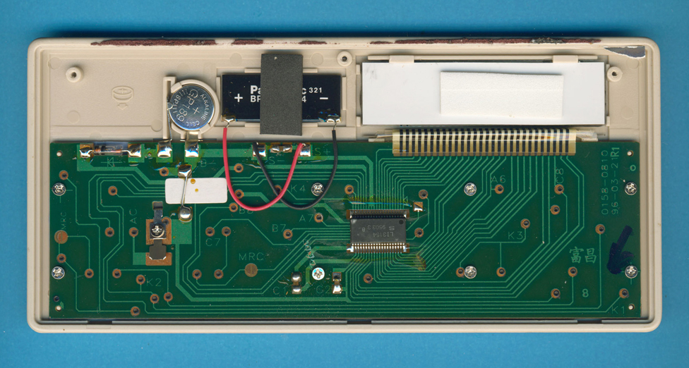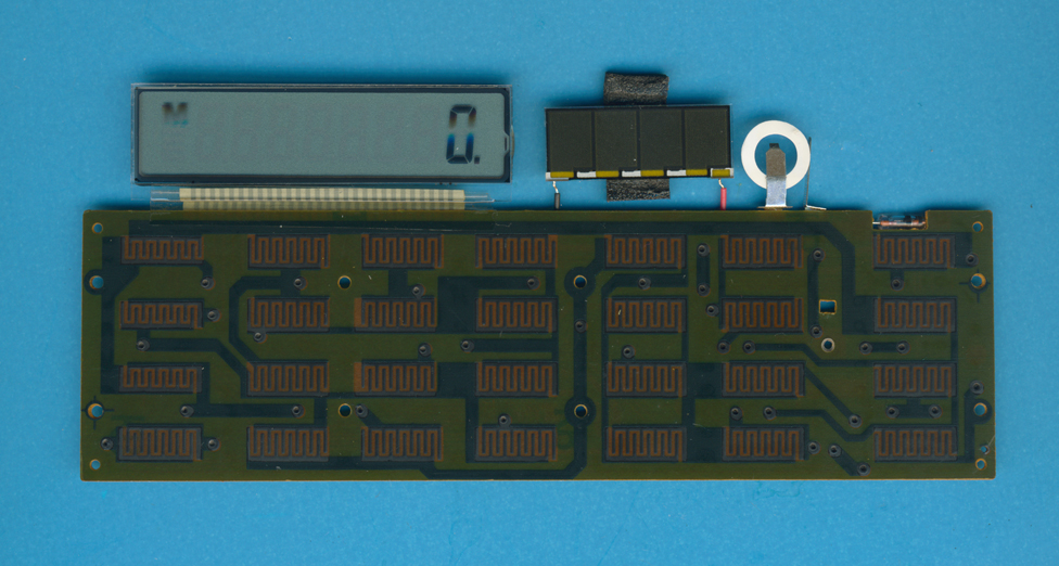 Close-up view of the jumper on the PCB of a Radio Shack EC-455 calculator. ![]() |