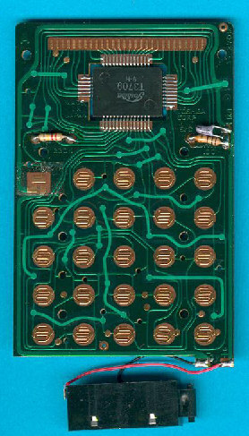 early Toshiba T3709 calculator chip and the typical battery holder.