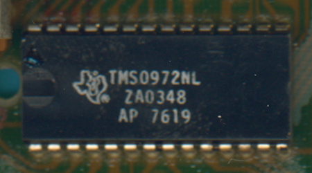 TMS0972 packaged in a 28-pin DIP (Dual In-line Package). ![]() |