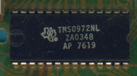 TMS0972 packaged in a 28-pin DIP (Dual In-line Package). ![]() |