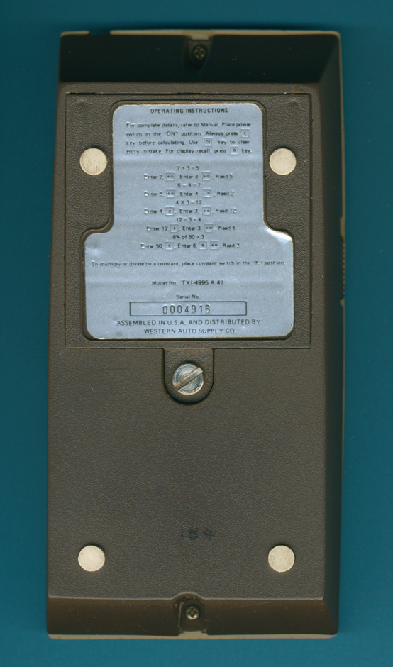 side of the Western Auto electronic Wizard with a confusing model number: TXI-4995A47.