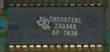 TMS0972 packaged in a 28-pin DIP (Dual In-line Package). ![]() |