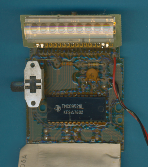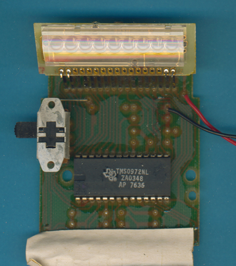 (PCB) of a CONCEPT II manufactured in October 1976 is centered around a TMS0972 single-chip calculator circuit. ![]() |