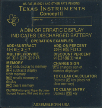 (PCB) of the featured CONCEPT II is centered around a TMS0952 single-chip calculator circuit. ![]() |