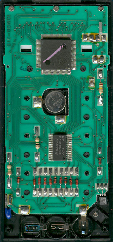 (PCB) of the TI-2700 Mini Data Bank with just two major components and 4 batteries.