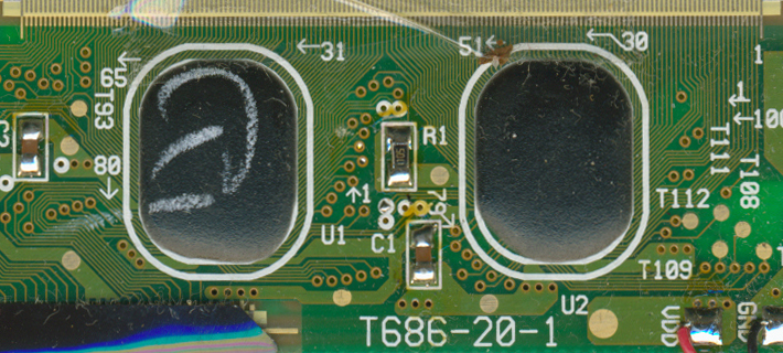 two display drivers of the PocketMate 400 in Chip-on-Board (COB)