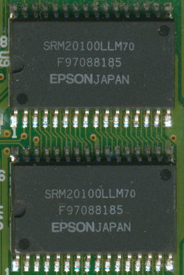 PocketMate 400 makes use of two Memory chips with 128k Bytes capacity, each. |