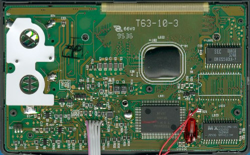 circuit board (PCB) of the PS-6300 with the Toshiba T6M83 microcontroller, 32k*8 S-RAM, 32k*8 ROM and the Toshiba display controller. The free area on the PCB is used with the PS-6500.