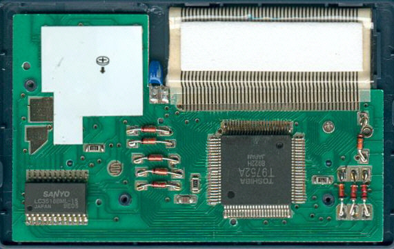 circuit board of the TI-2400 with the Toshiba T9752 microcontroller and a 2k S-RAM. |