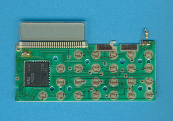(PCB) of the APF 3552CK Checkbook Balancer is centered around a NEC uPD1832G single-chip calculator circuit.