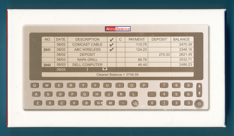 box of the AccuBalance Personal Digital Account Register sold around 2010 in