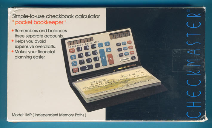 box of the Bedol Checkmaster Checkbook Calculator with Leather Bi-Fold