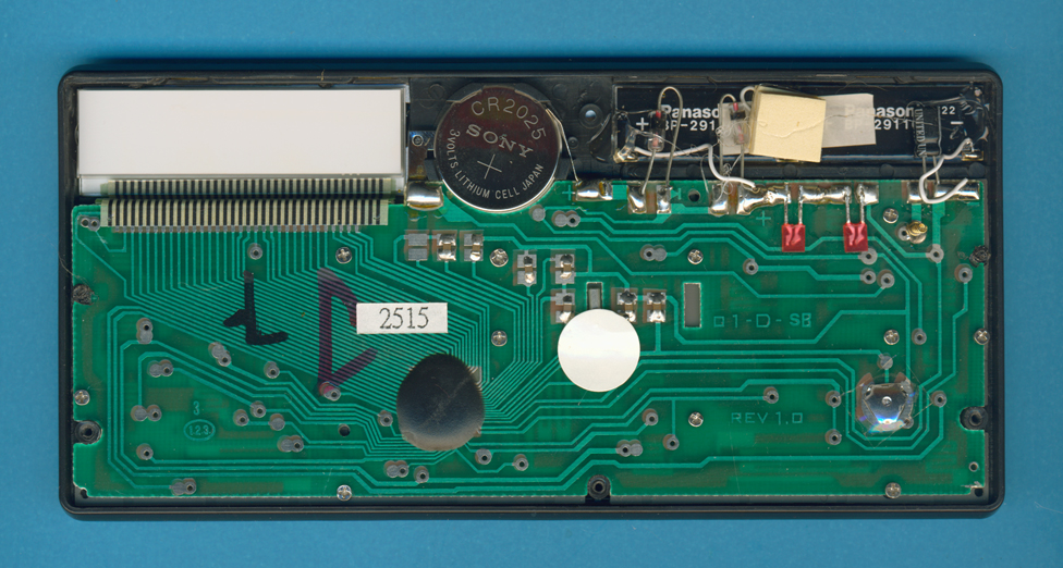 (PCB) of the Bedol Checkmaster Checkbook Calculator is centered around an unknown single-chip calculator circuit.