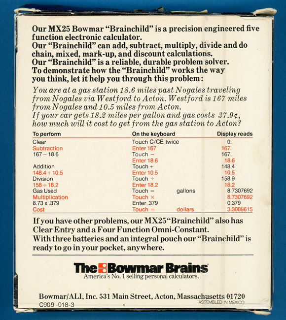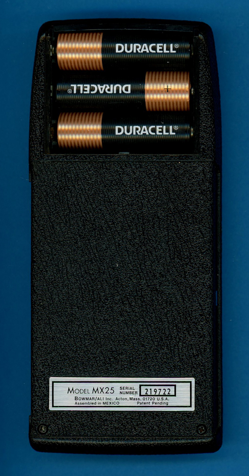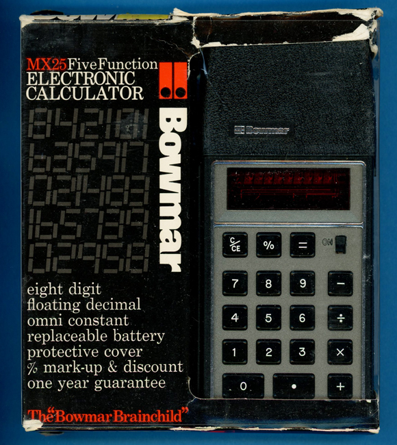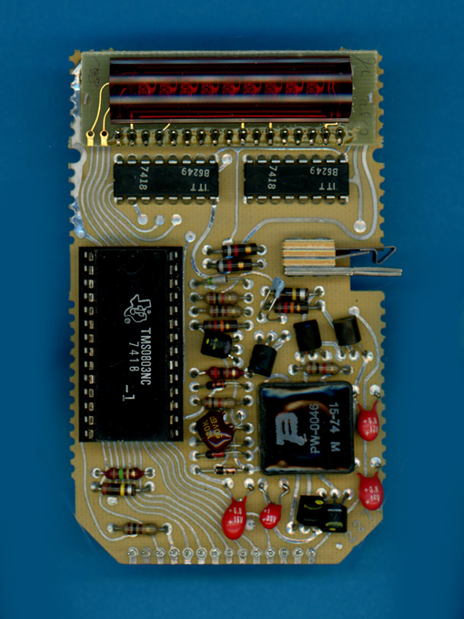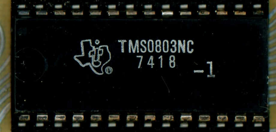 around a TMS0803 single-chip calculator circuit and supported by four display driver chips. ![]() |