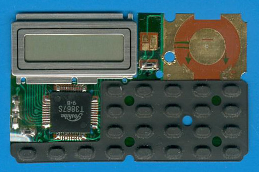 circuit board (PCB) of the Palmtronic LC-7 uses a Toshiba T3867S single-chip calculator circuit.