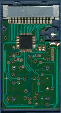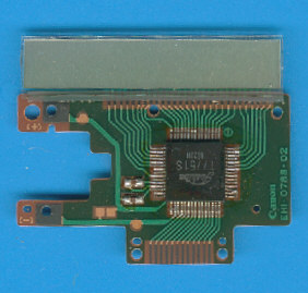 a T7751S calculator circuit developed by Toshiba with a small printed circuit board (PCB).