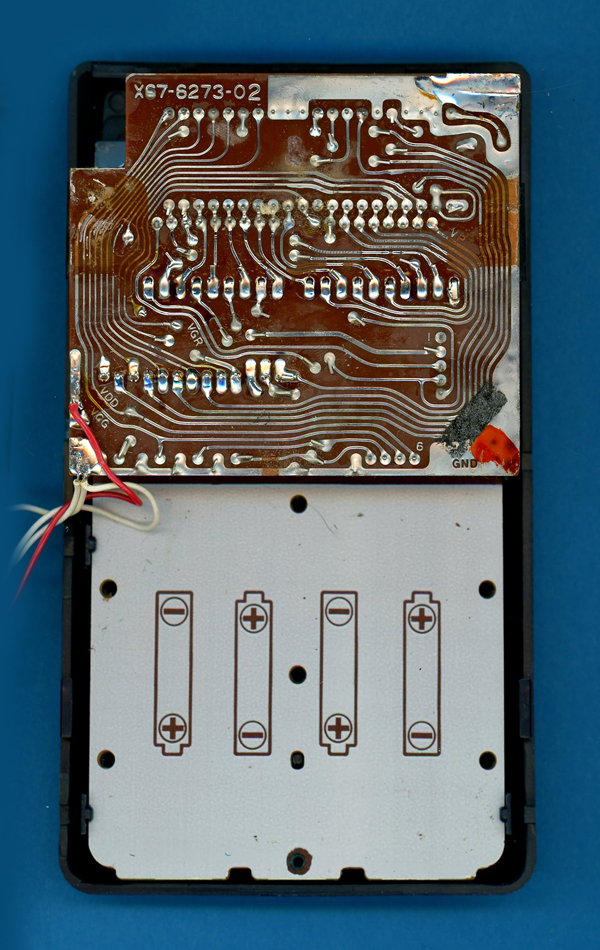 circuit board (PCB) of the Canon LD-80 Panther D is centered around a Hitachi HD3633 single-chip calculator circuit hiding under the VF-Display.  |