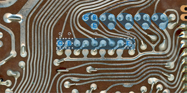 (PCB) of a Canon LE-83 prepared for both hybrid circuits