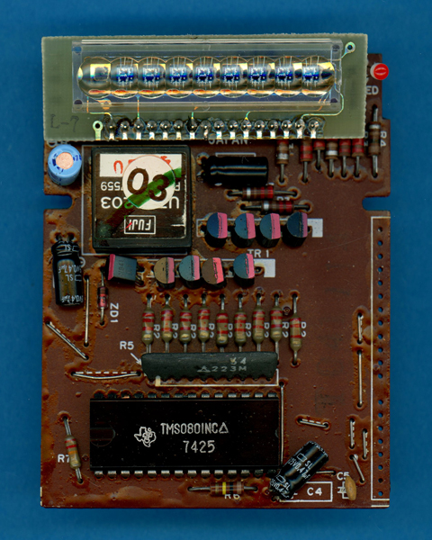 TMS0801 single-chip calculator circuit and supported by two display drivers hybrid circuits. ![]()  |