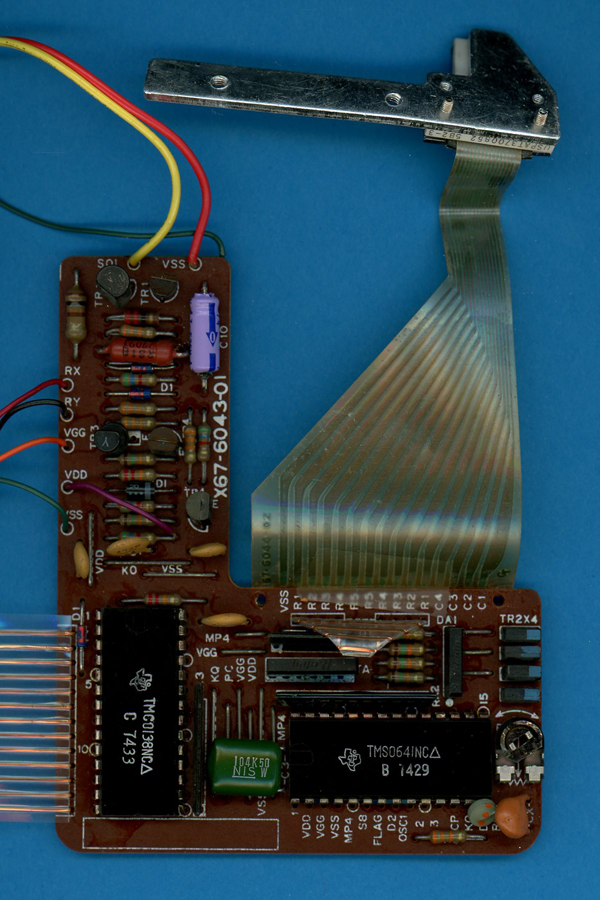 centered around a TMC0138 single-chip calculator circuit and a TMS0641 Printer Chip driving the 4x5 dot-matrix thermal heater elements directly. ![]() |