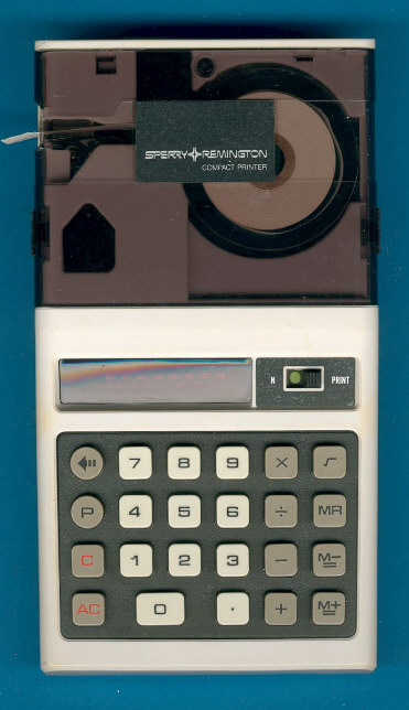 The Casio mini-printer was borrowed from a good friend and it is wise to keep the fingers away from his calculators. This Sperry Remington is my own, please explore the inside of this unique printing calculator.