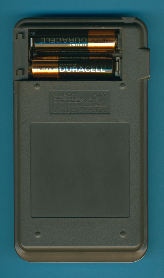 (PCB) of the Casio AL-8S hides the Hitachi HD36133 single-chip calculator circuit.