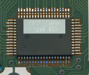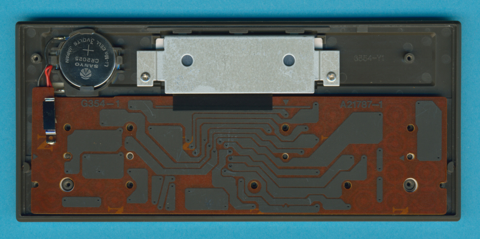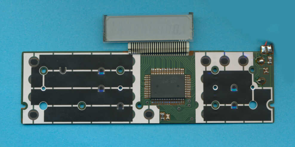 (PCB) of the Casio CB-100 Checkbook calculator is centered around a NEC uPD1826G single-chip calculator circuit.