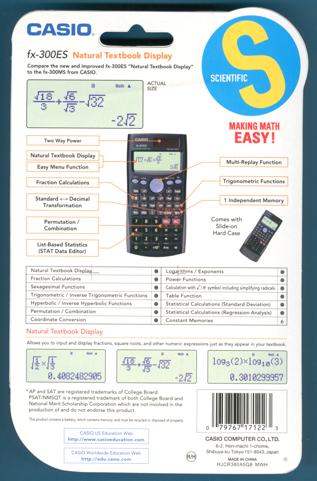 fx-300ES calculator in its package.