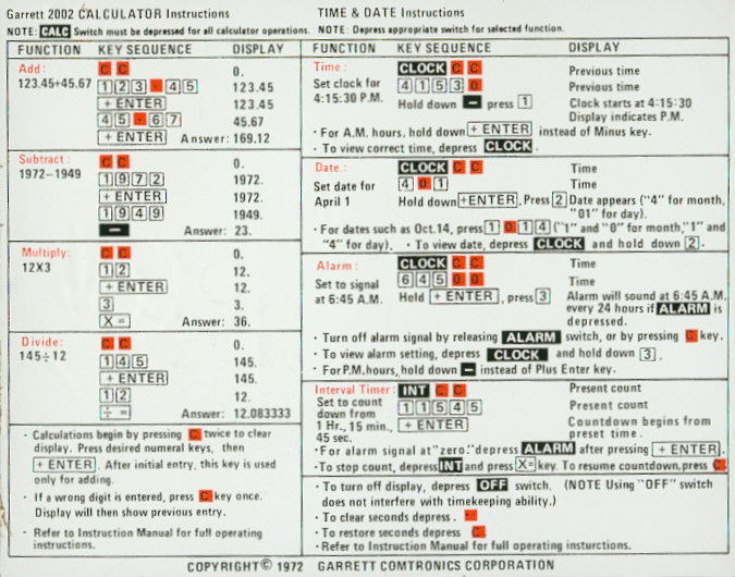 the Garrett 2002 is realized with the well known National Semiconductor MM5317, the single-chip calculator circuit a MM5714.