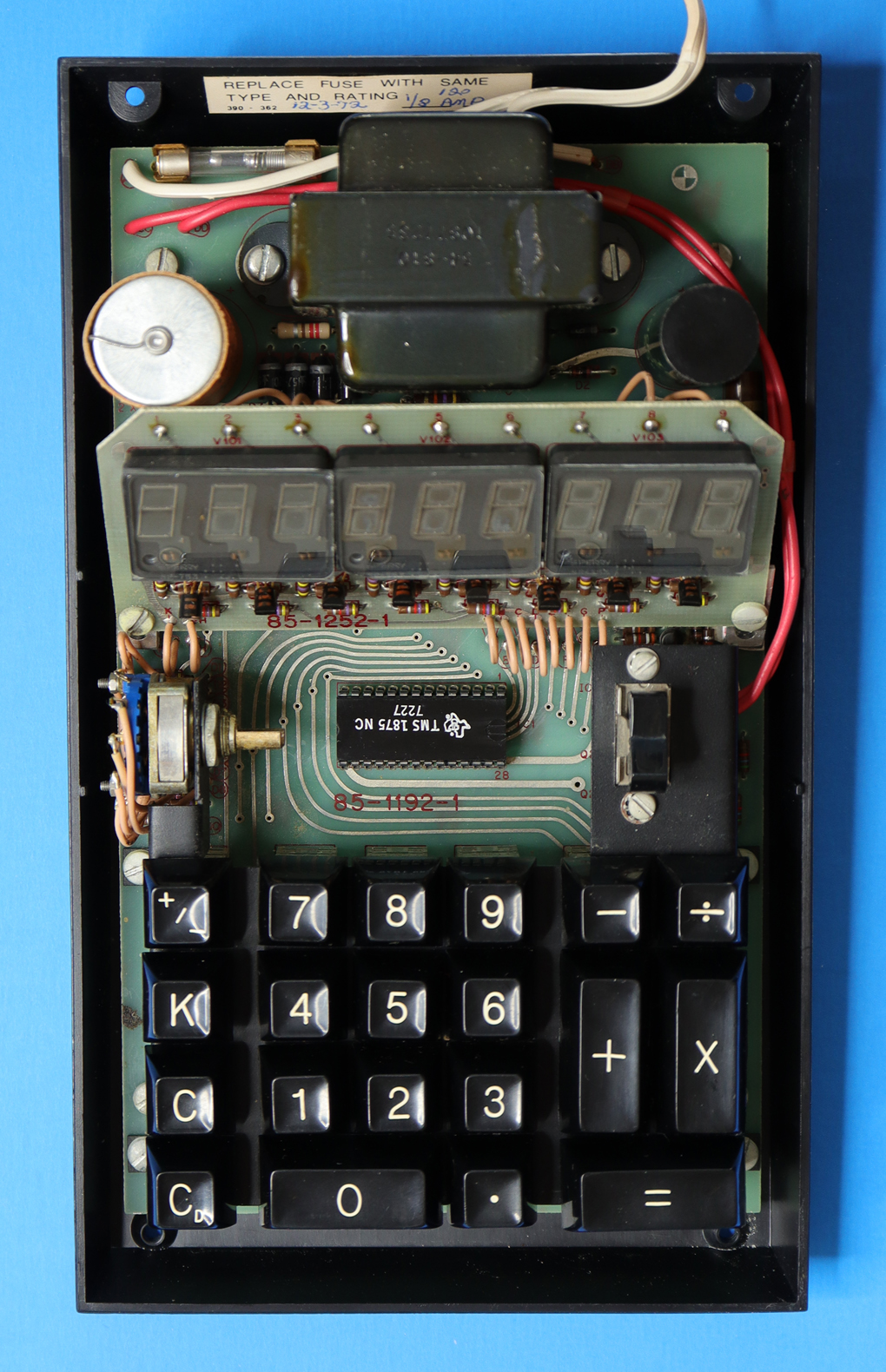 (PCB) of the Heathkit IC-2008 is centered around the TMS1875 single-chip calculator circuit. |