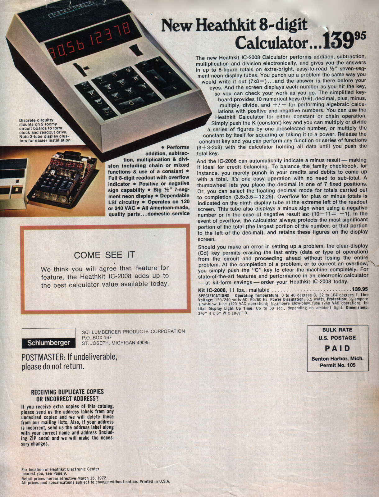 advertisement of the Heathkit IC-2008 in the Spring (March) 1972 Catalog